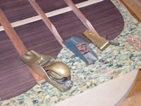 | Here's some detail of the go-deck clamping. Since I thinly profiled