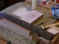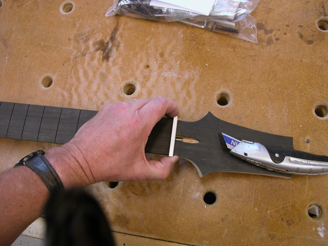 | When completed, the truss rod is tested in the roughed-out neck. |