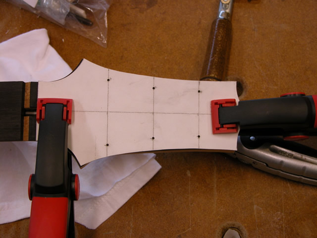 would just fit within the 1/16" holes. Once clamped in place, I also