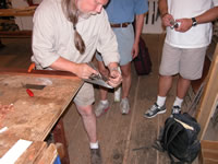 | Here, Dan Biasca is demonstrating the use of the bandsaw to cut